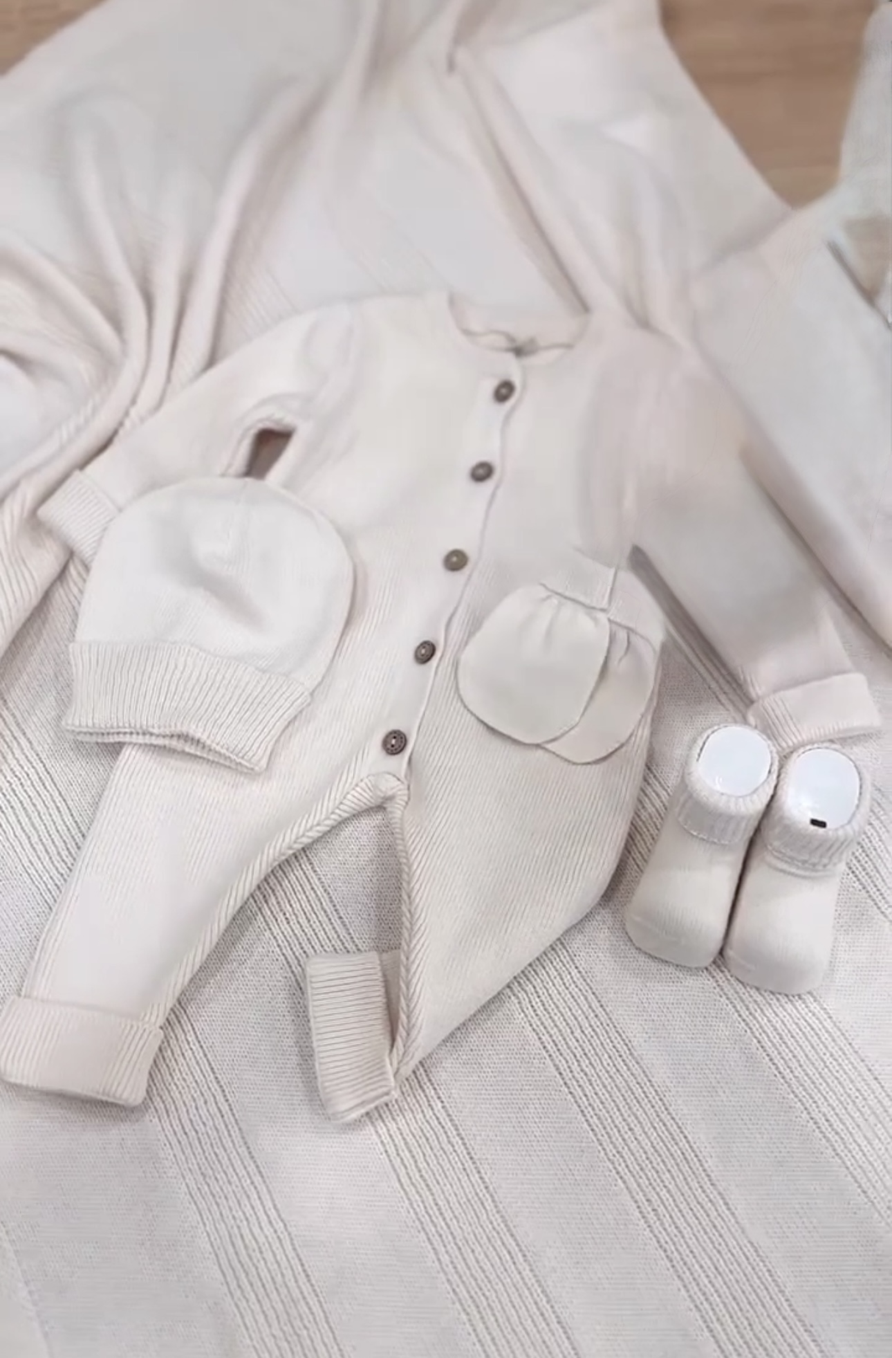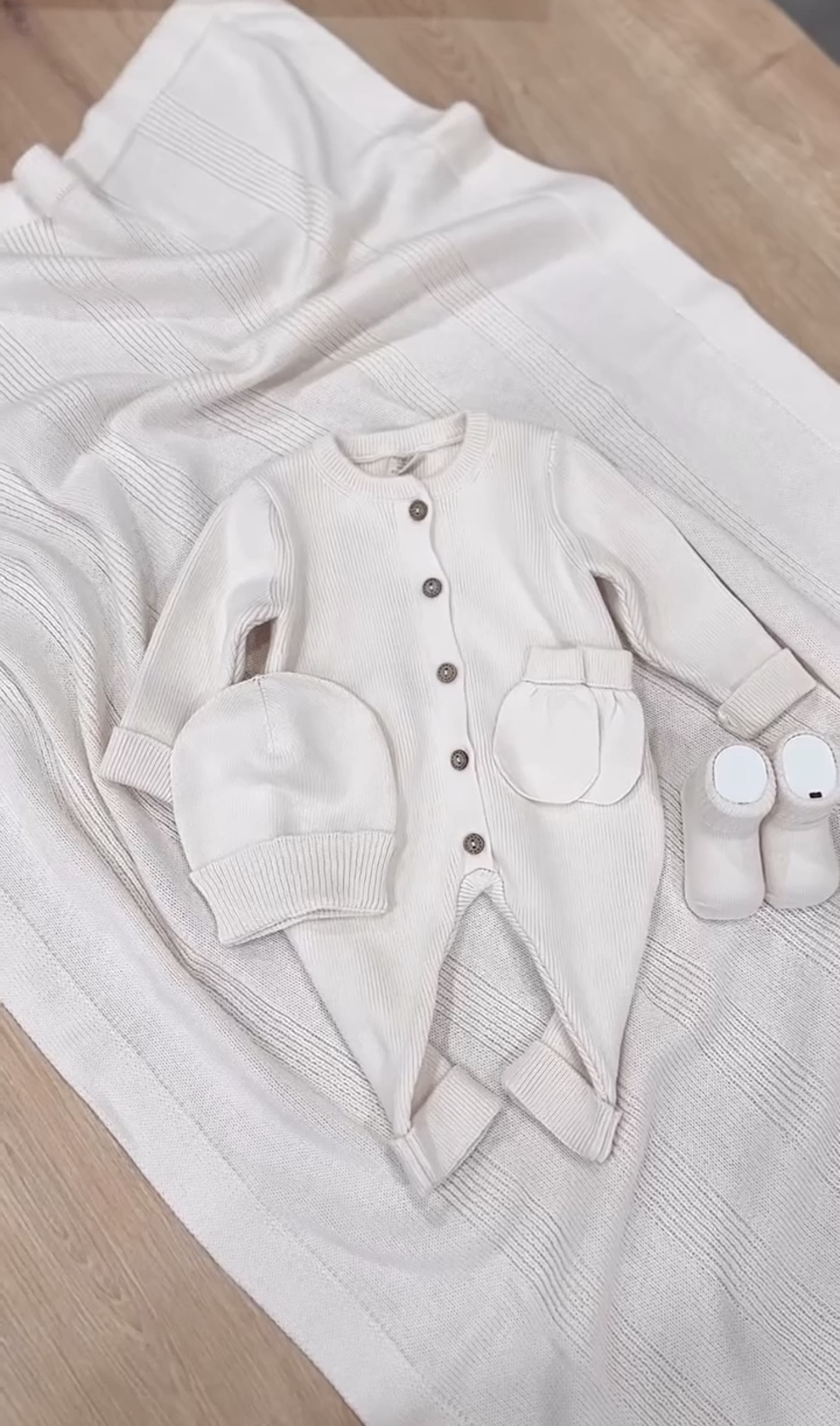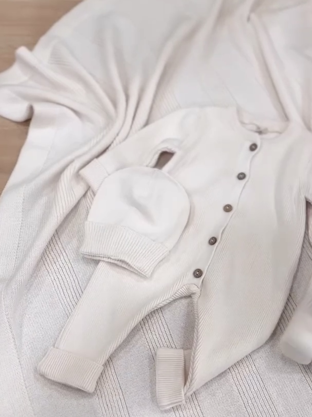 Complete newbornset LEAF is ook verkrijgbaar in de kleur Creme.