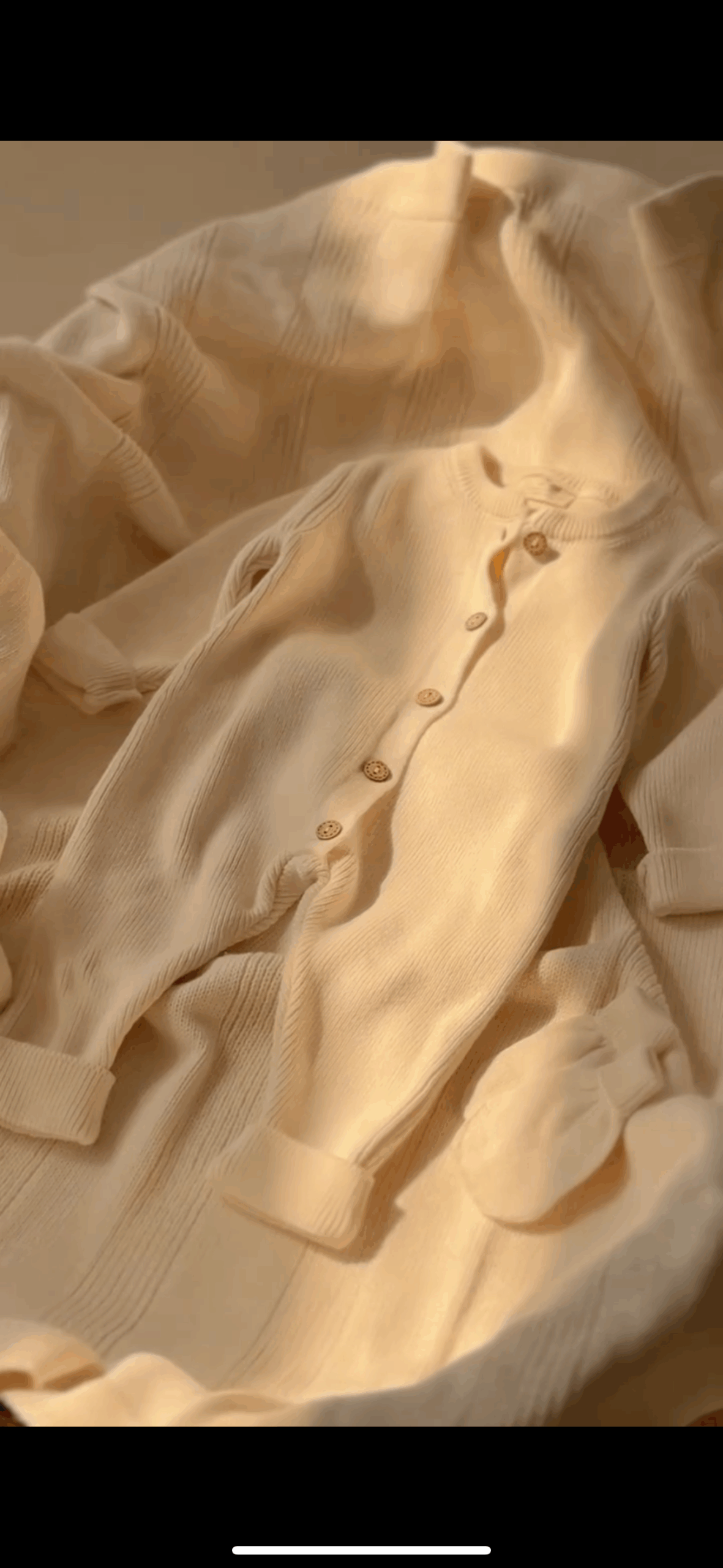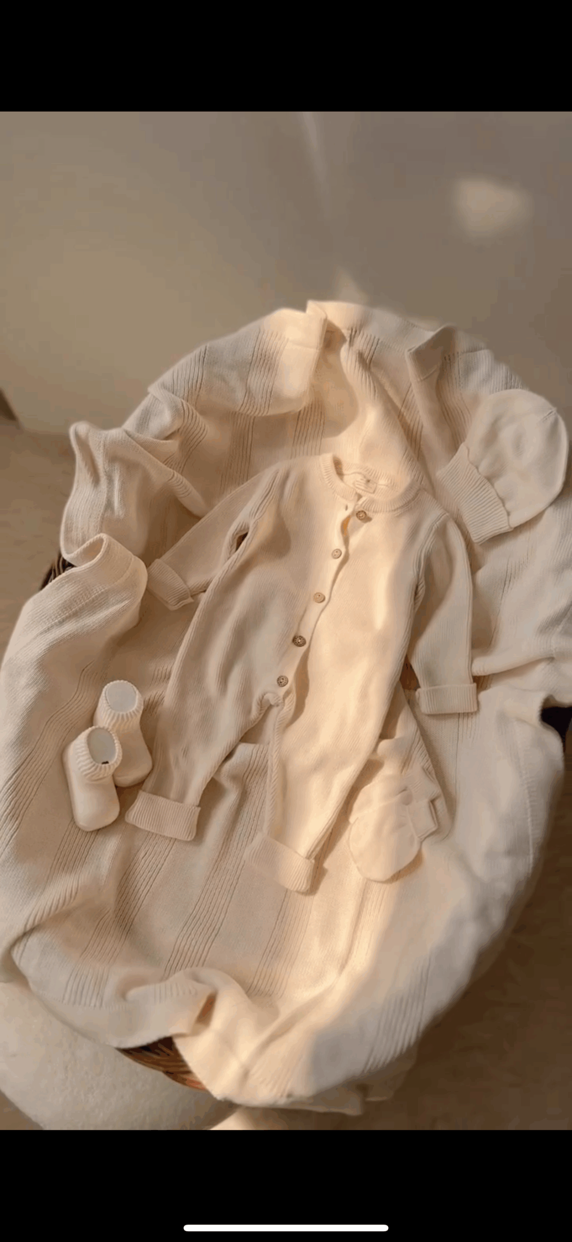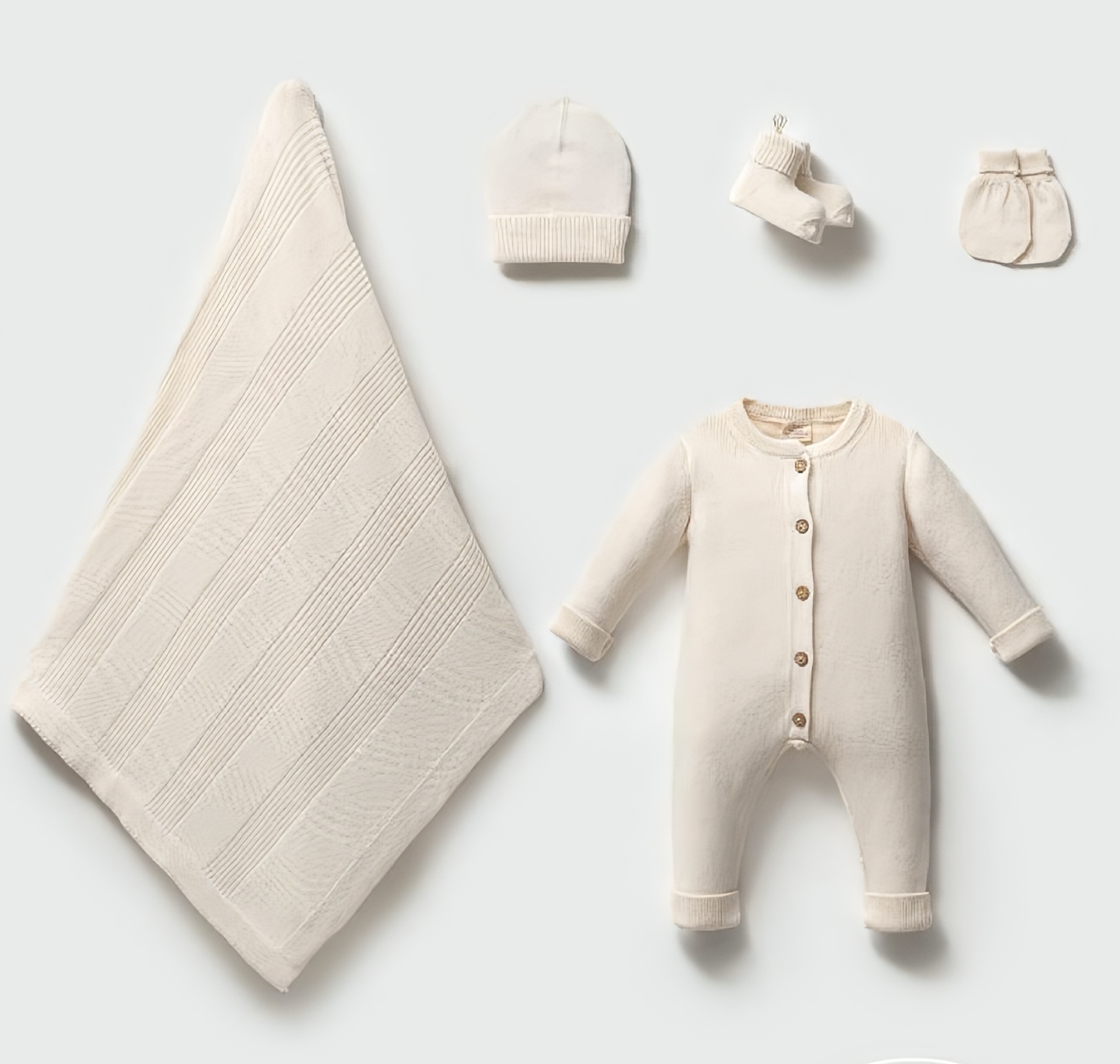 Complete newbornset LEAF is ook verkrijgbaar in de kleur Creme.