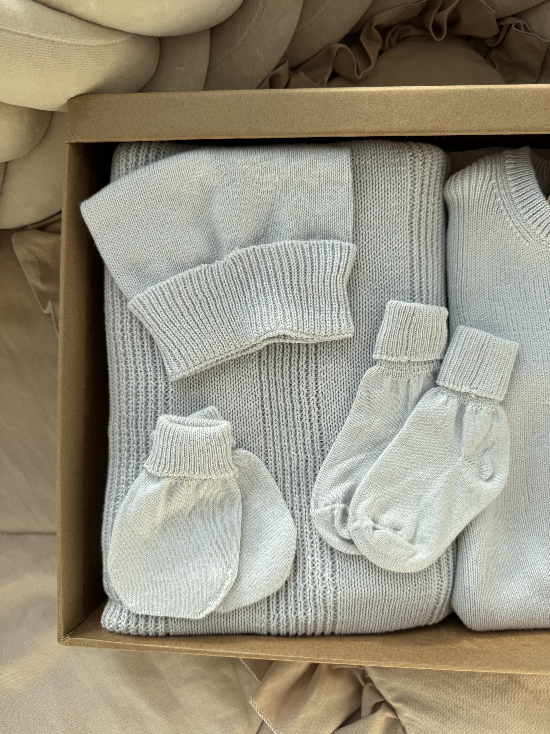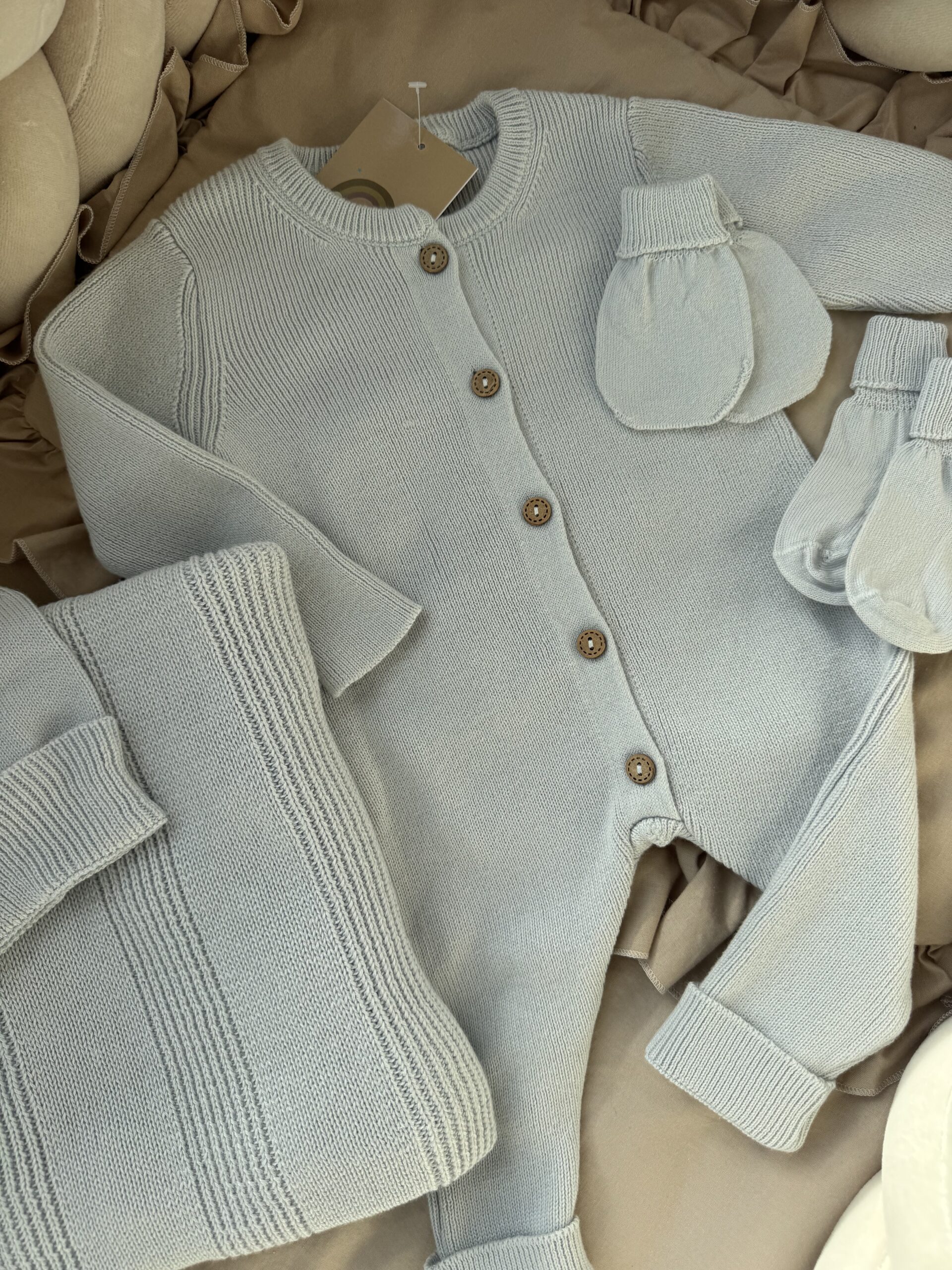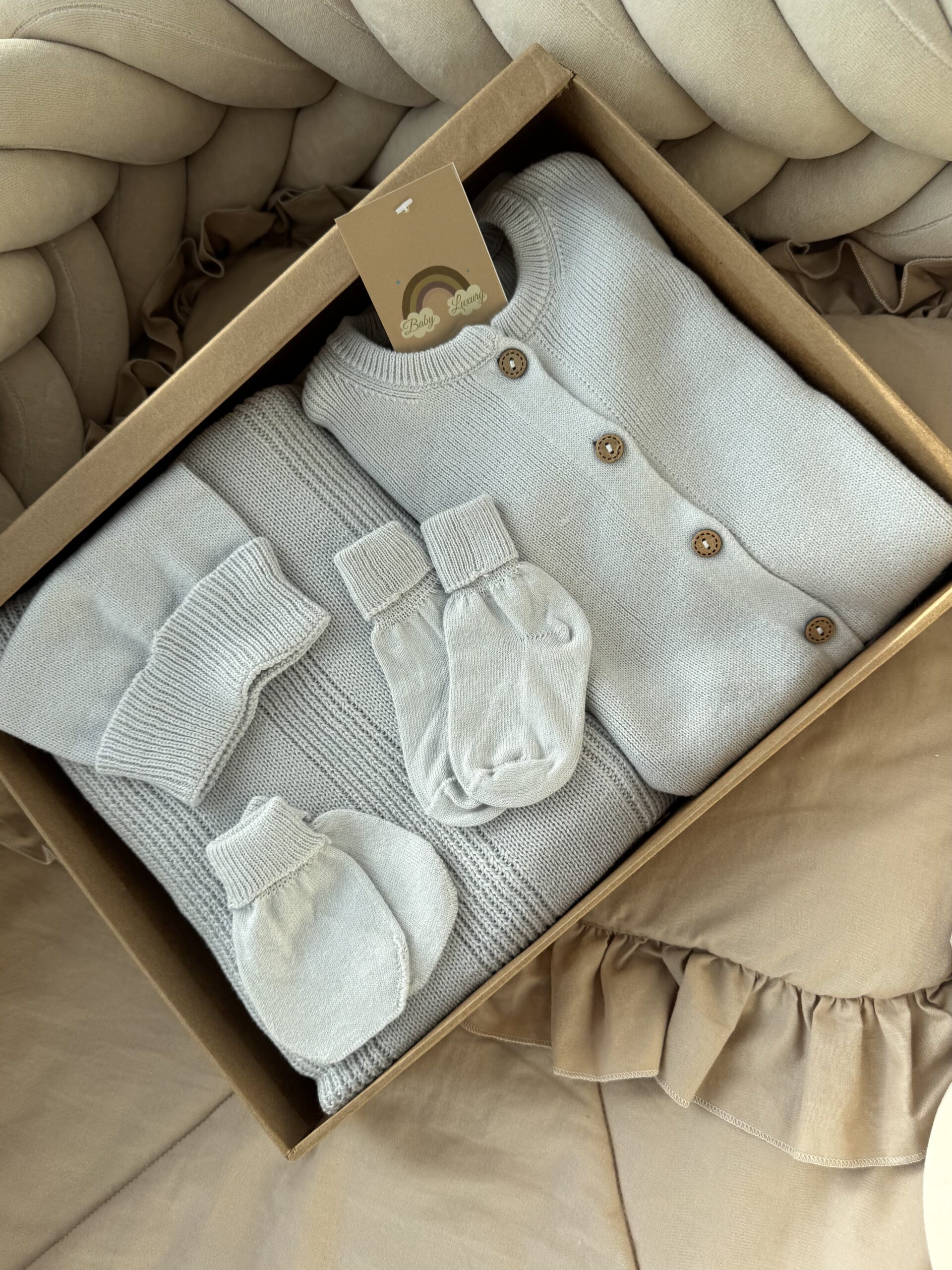Complete Newbornset LEAF in de kleur Babyblauw. Unisex, tijdloos én comfy.