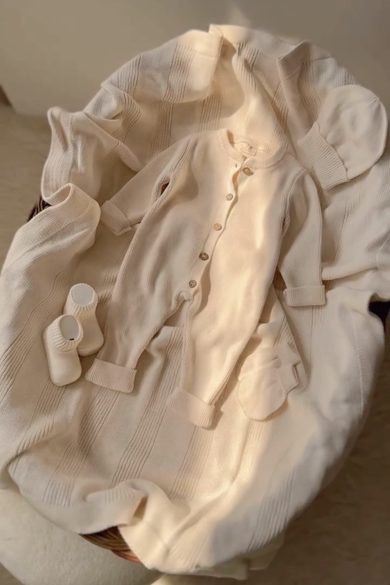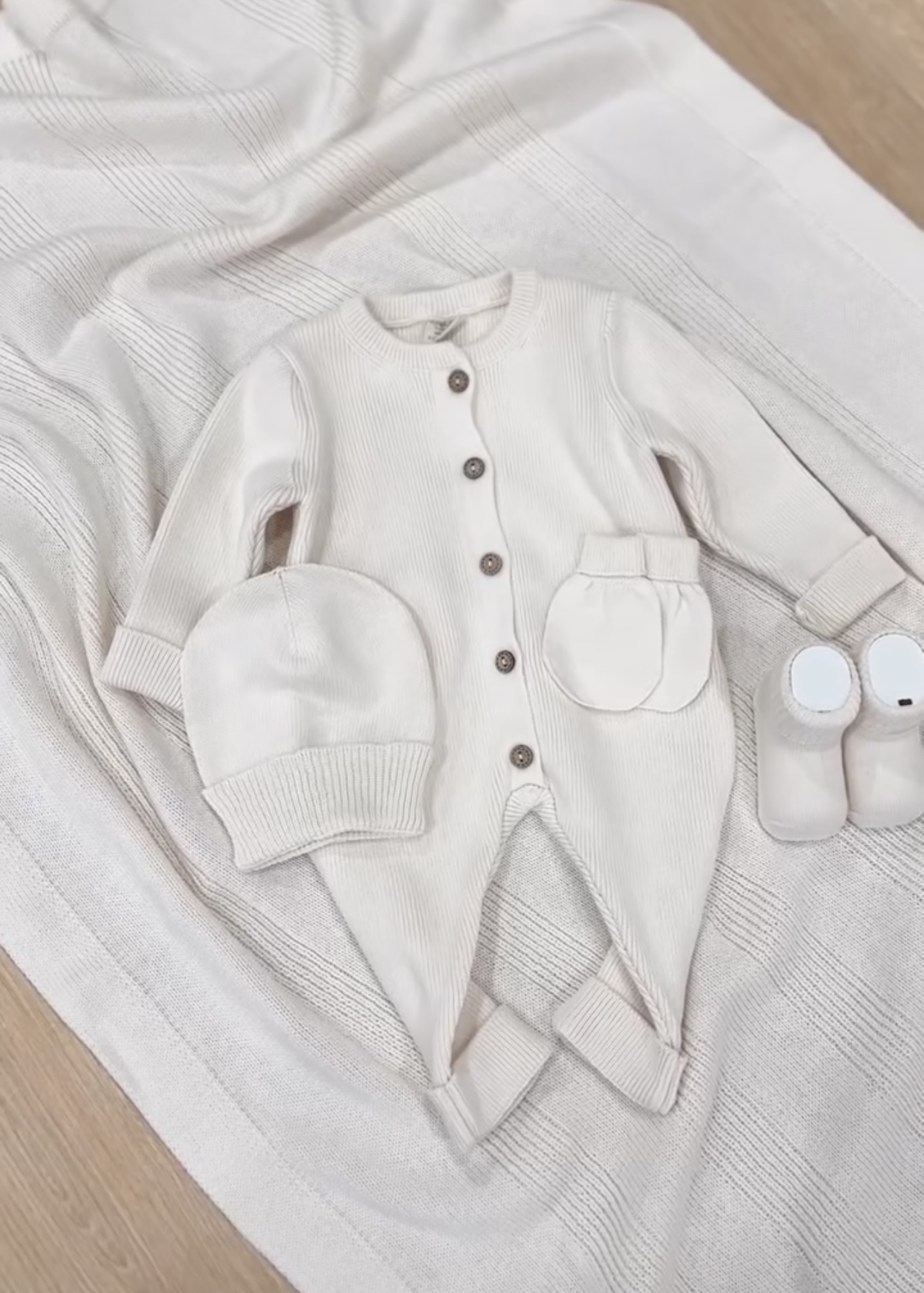Complete Newbornset LEAF in de kleur Creme. Unisex, tijdloos én comfy.
