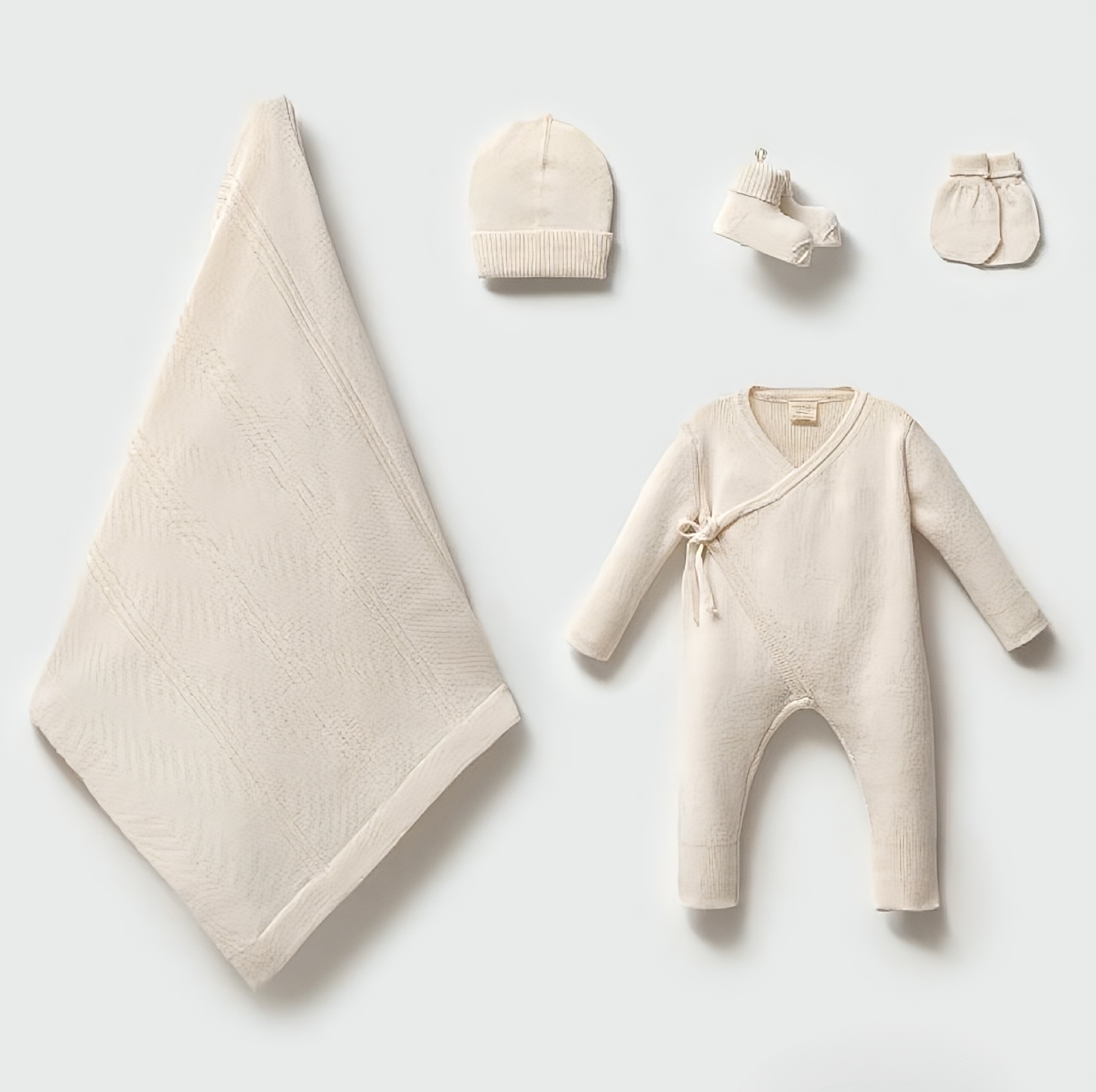 Complete Newbornset PURE in de kleur Cream. Unisex, tijdloos én comfy.
