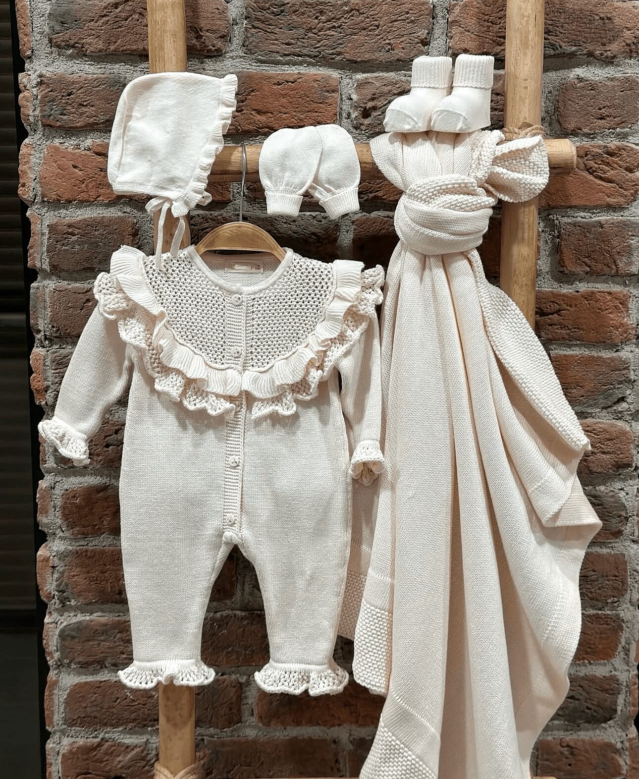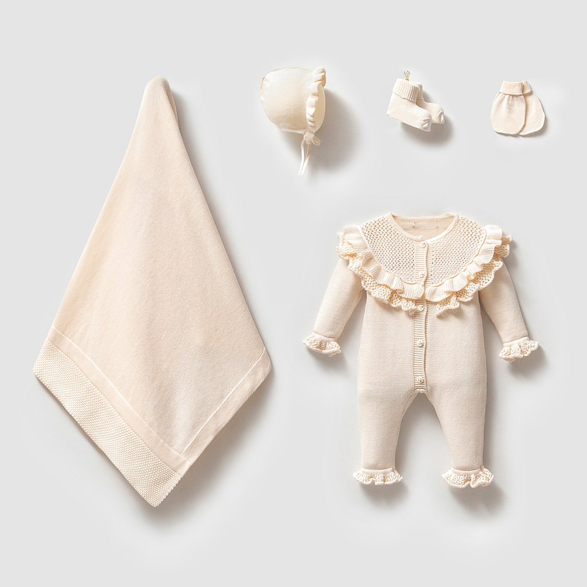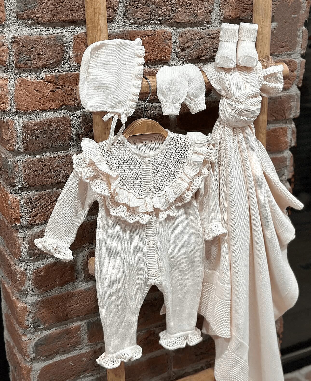 Een complete newbornset gemaakt van 100% biologisch katoen.