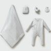 Een exclusieve complete newbornset gemaakt van biologisch katoen.