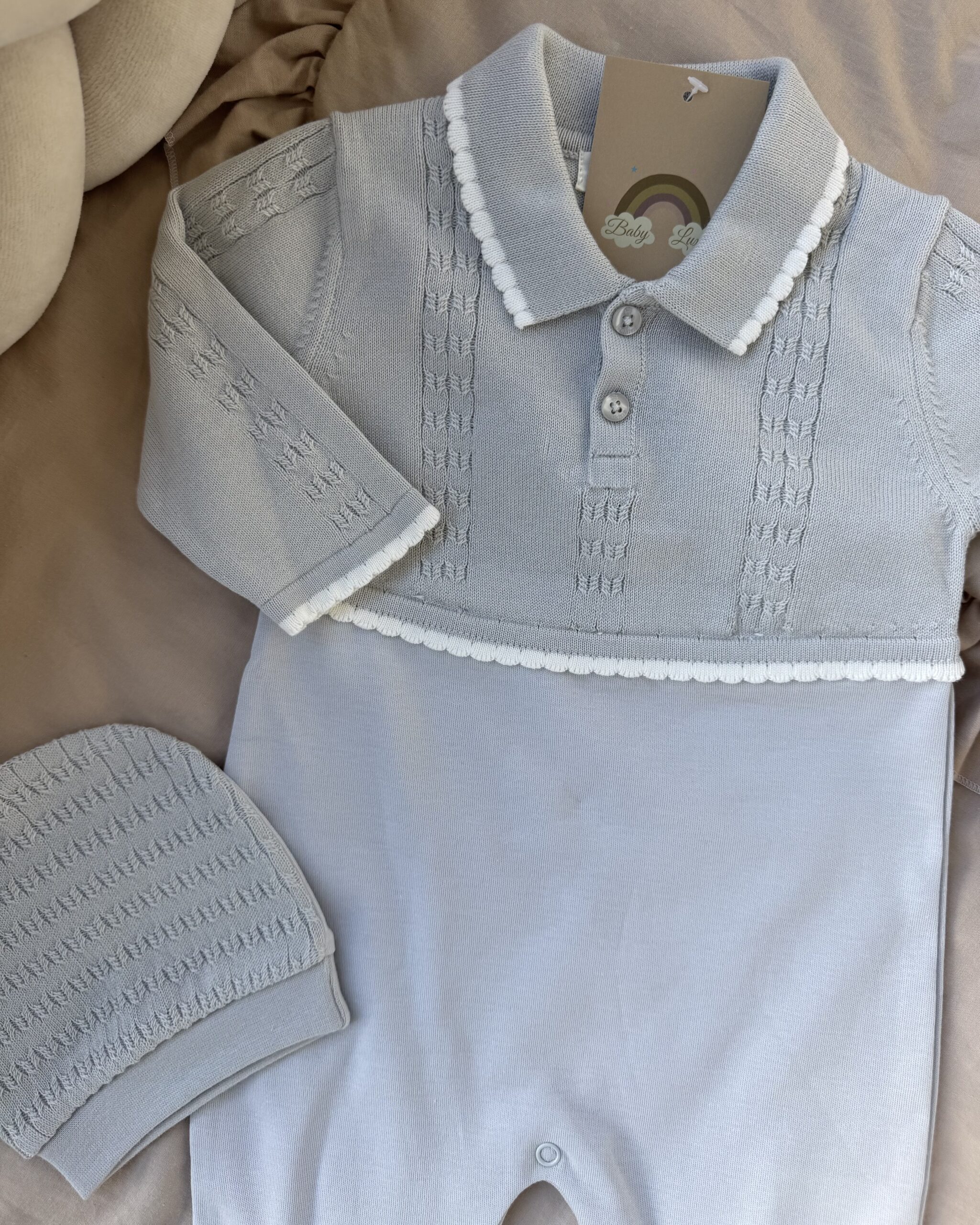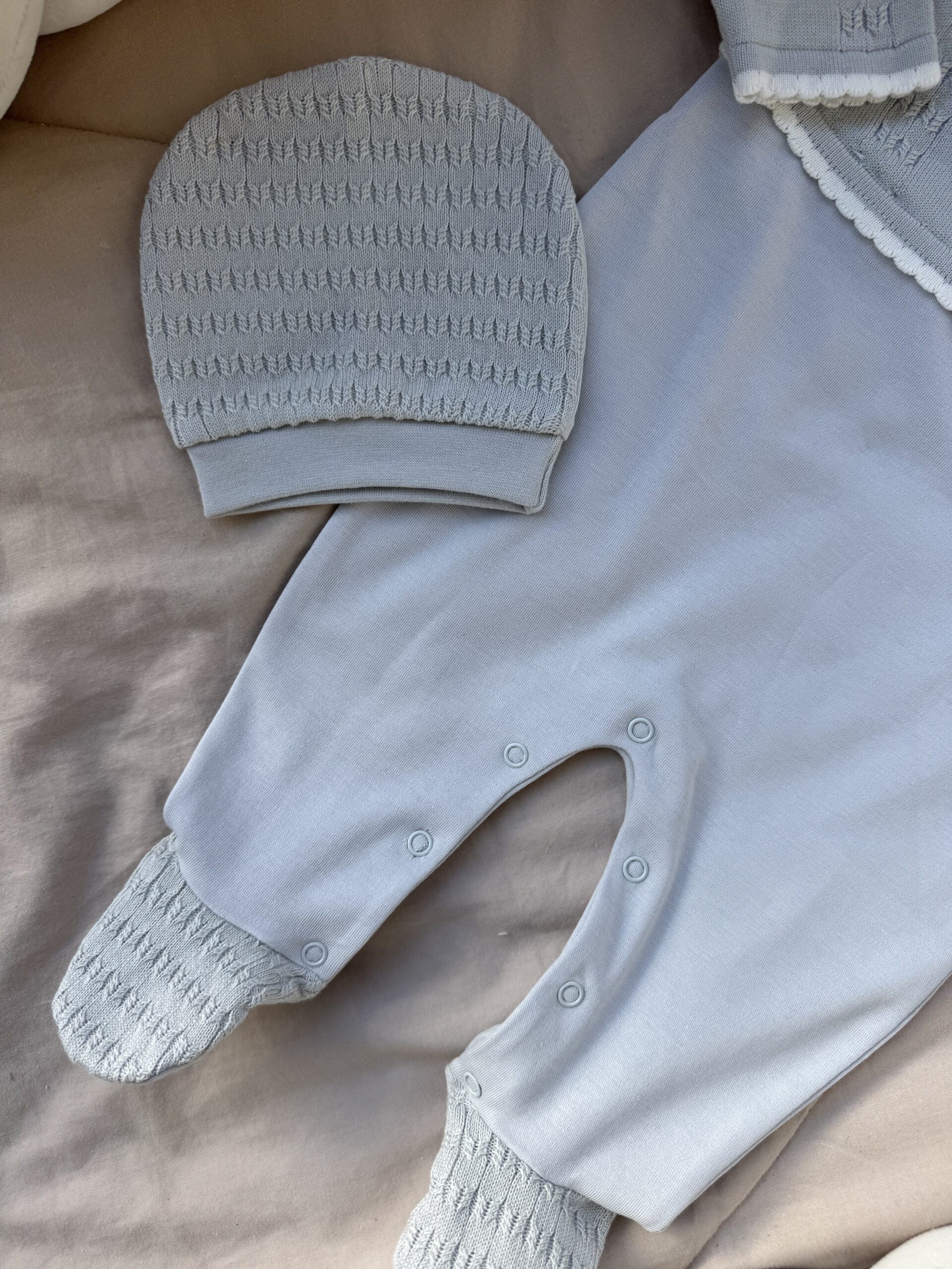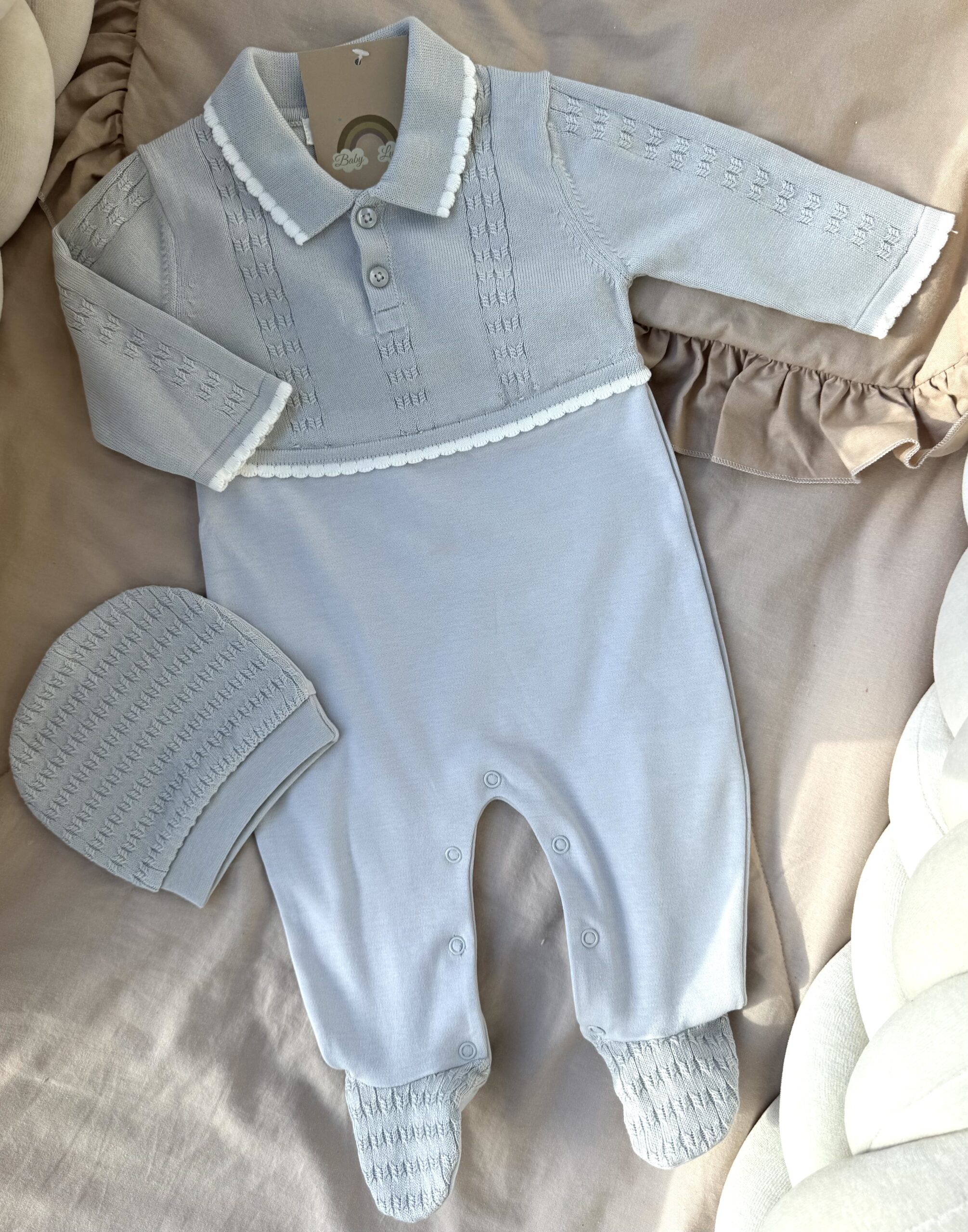 Een boxpakje met een bijpassend mutsje.