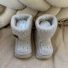 Een gebreide wiegdeken in de kleur Almond.