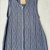 De slaapzak heeft een rissluiting en een gebreid patroon.