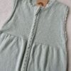 De slaapzak heeft een rissluiting en een gebreid patroon.