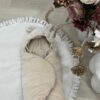 Zo kun je het voedingskussen, de inbakerdoek, slaapzak, multifunctionele XXL speelnest, babynestje, de losse bedomranders en/of speelmat toevoegen aan de set!