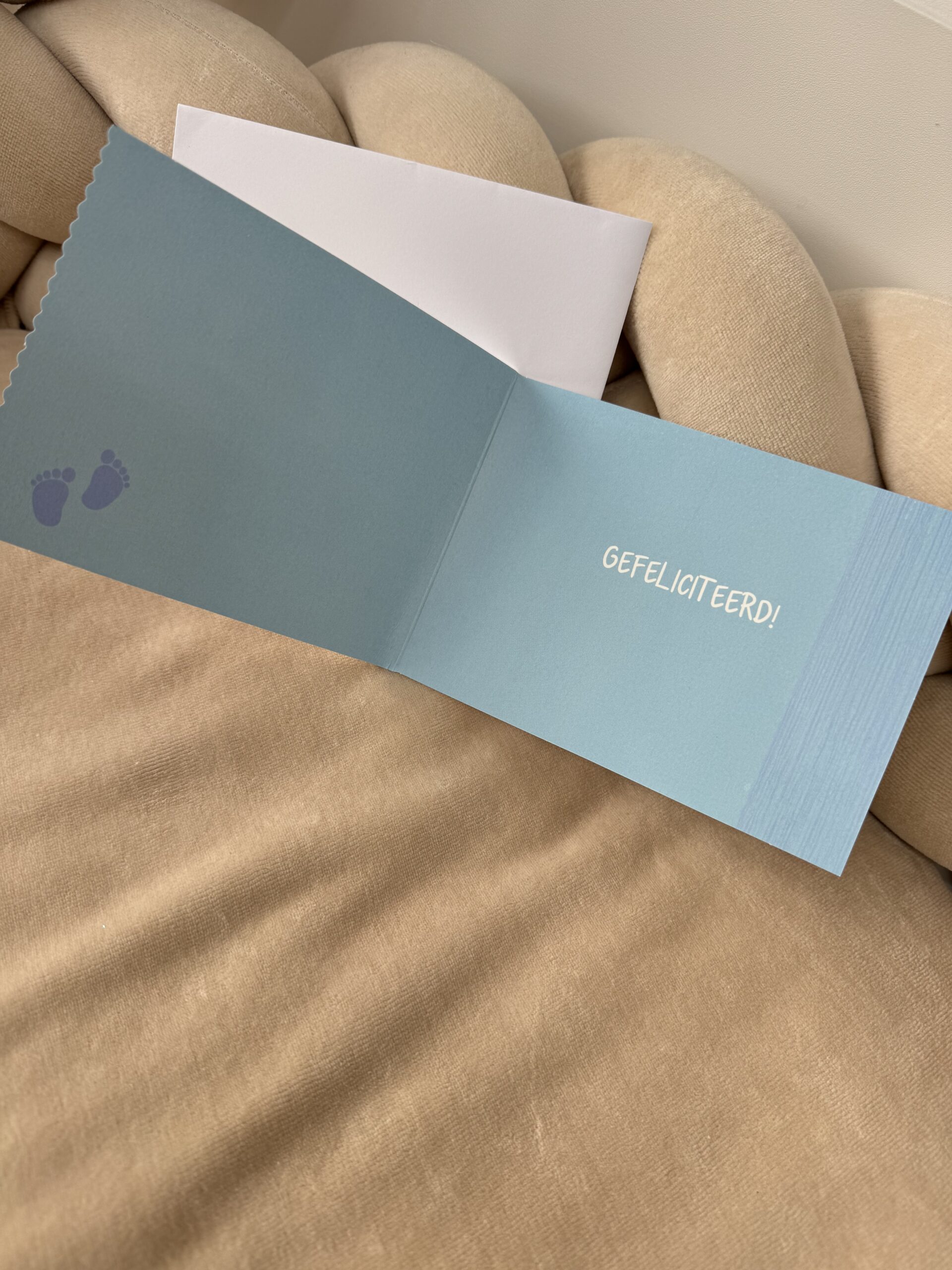 Een geboortekaart/wenskaart met de tekst: